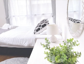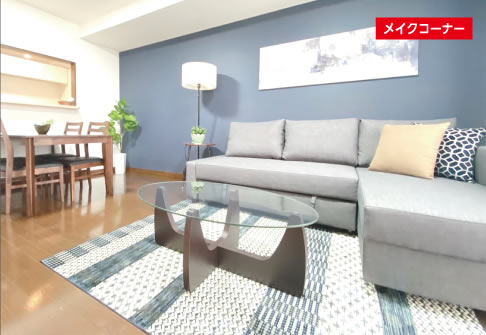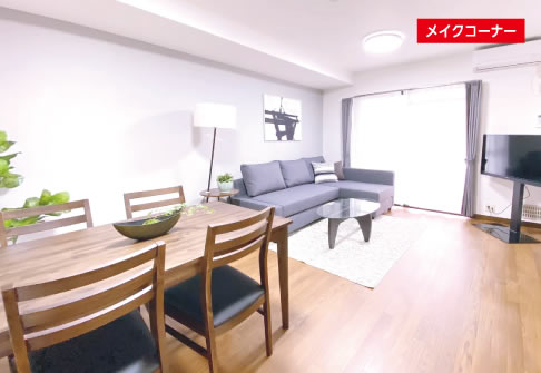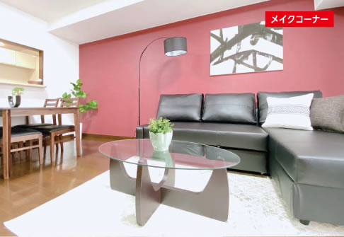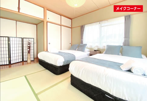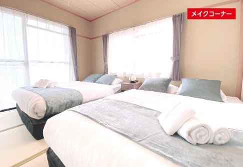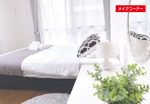 大きなカワイイミラーのついた、メイクコーナー付ルームをご用意。